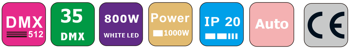Control and Programming: DMX512,RDM, master/slave synchronous control mode, self-walking mode, single scene mode