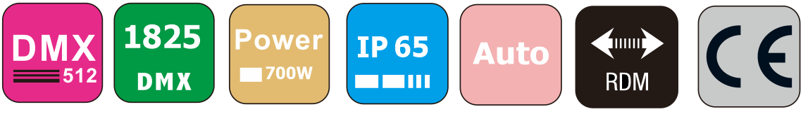 •Control: DMX512 Control, support RDM function; upgrade lamps through DMX signal line pair. Art-Net control;